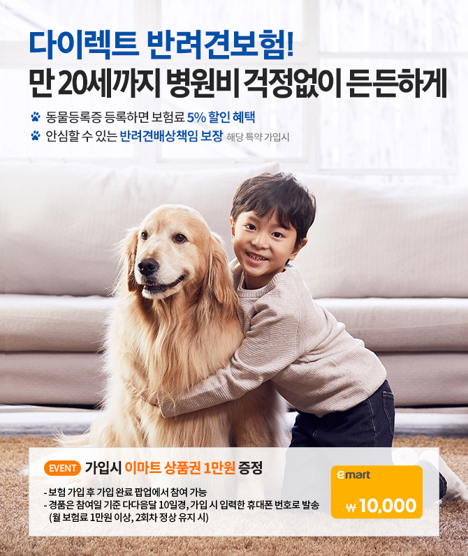 - 갱신을 통해 만20세까지 질병, 상해로 인한 동물병원 치료비 보장